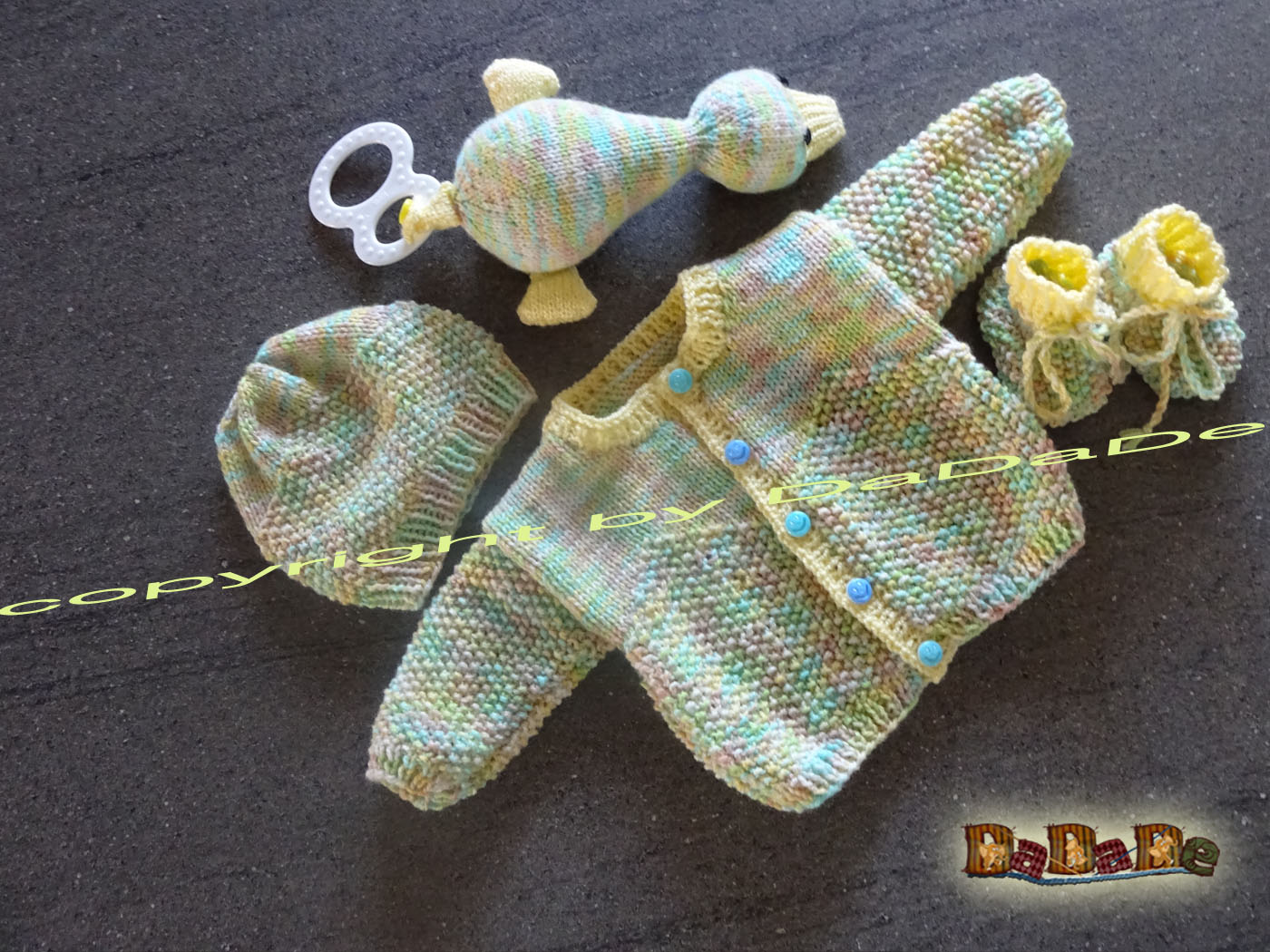 1.Sie kaufen hier die Strickanleitung für dieses einfach gestrickte Baby-Set,
